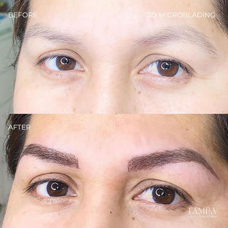 This technique lasts much longer than microblading and looks more natural because it blends the 3D hairstrokes with your natural eyebrows . If you have had previous PMU (permanent makeup) or microblading done on your eyebrows, this is also the ideal service since it can cover previous work and color correct poorly done eye tattoos.